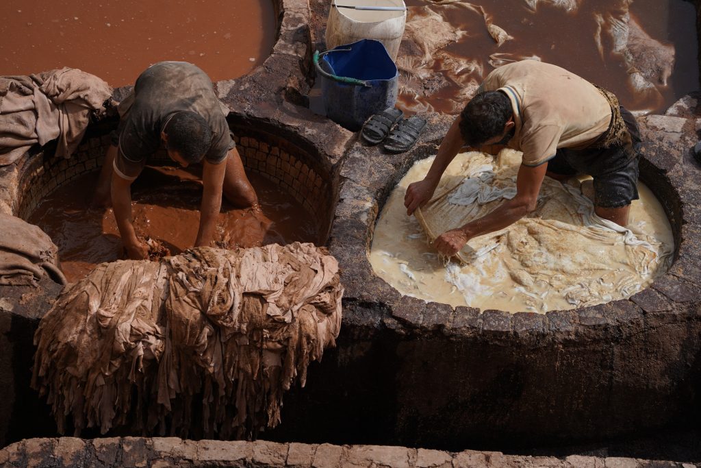 Turning animal skin into leather requires a cocktail of harmful chemicals, including mineral salts, formaldehyde, and coal-tar derivatives. Tanning exists to almost render skins “inorganic” in their behaviour, preventing them from effectively biodegrading as the organic tissues once were. This process not only pollutes the environment but also poses serious health risks to tannery workers and nearby communities.