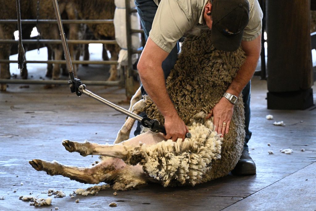 Shearing causes suffering because, in the wool industry, it is typically done very quickly by shearers who are contractors paid per fleece (or per its weight), not per hour of work, and are therefore likely to rush, treating animals very roughly and often causing them injuries and bleeding. Some shearers (known as Gun Shearers) can process up to 400 sheeps in a day, and they aggressively pin them down to prevent them from moving around — which is scary and hurts them. Some sheeps resist more than others, so the impatient shearers may hit them and stomp on their heads to keep them still.