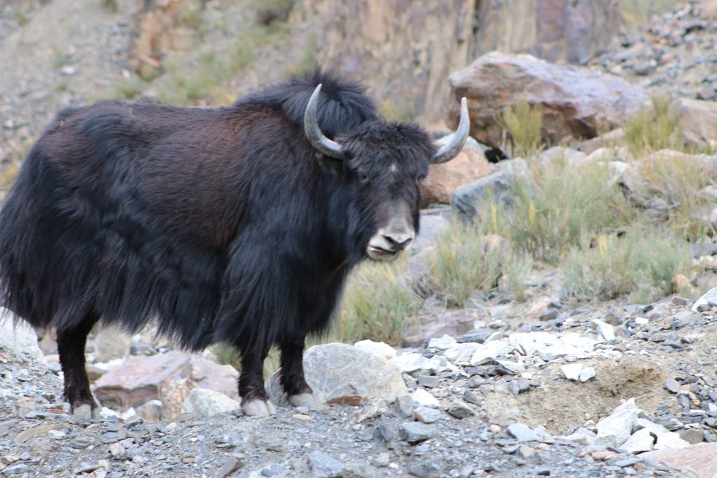 Yak farming is primarily practised in high-altitude regions of Central Asia, with significant populations in countries like Bhutan. The majority of the 14 million or so domestic yak live at altitudes between 3000 and 5000 m. Yak farming is a low-cost production that requires minimal expenses because yaks are exclusively grazing animals and can feed on natural pastures year-round. Milk yield is low at 200–400 litres with a fat percentage of 6–7%. Butter is the main human-consumed product from Yak’s milk. Yaks are mainly farmed by people for subsistence using them as a source of milk, leather, and wool, as well as for transport, but there is anecdotal evidence of companies processing yak milk, with yak milk and its products categorised as speciality products owing to their hypoallergenic properties. Annual milk production has been estimated at up to 40 million tons per year. Yak meat is the main food of residents of Murgab, Tajikistan. Yaks’ long hair is also used. The average yak will yield around 1-2 lbs (500-1000gm) of fibre per year.